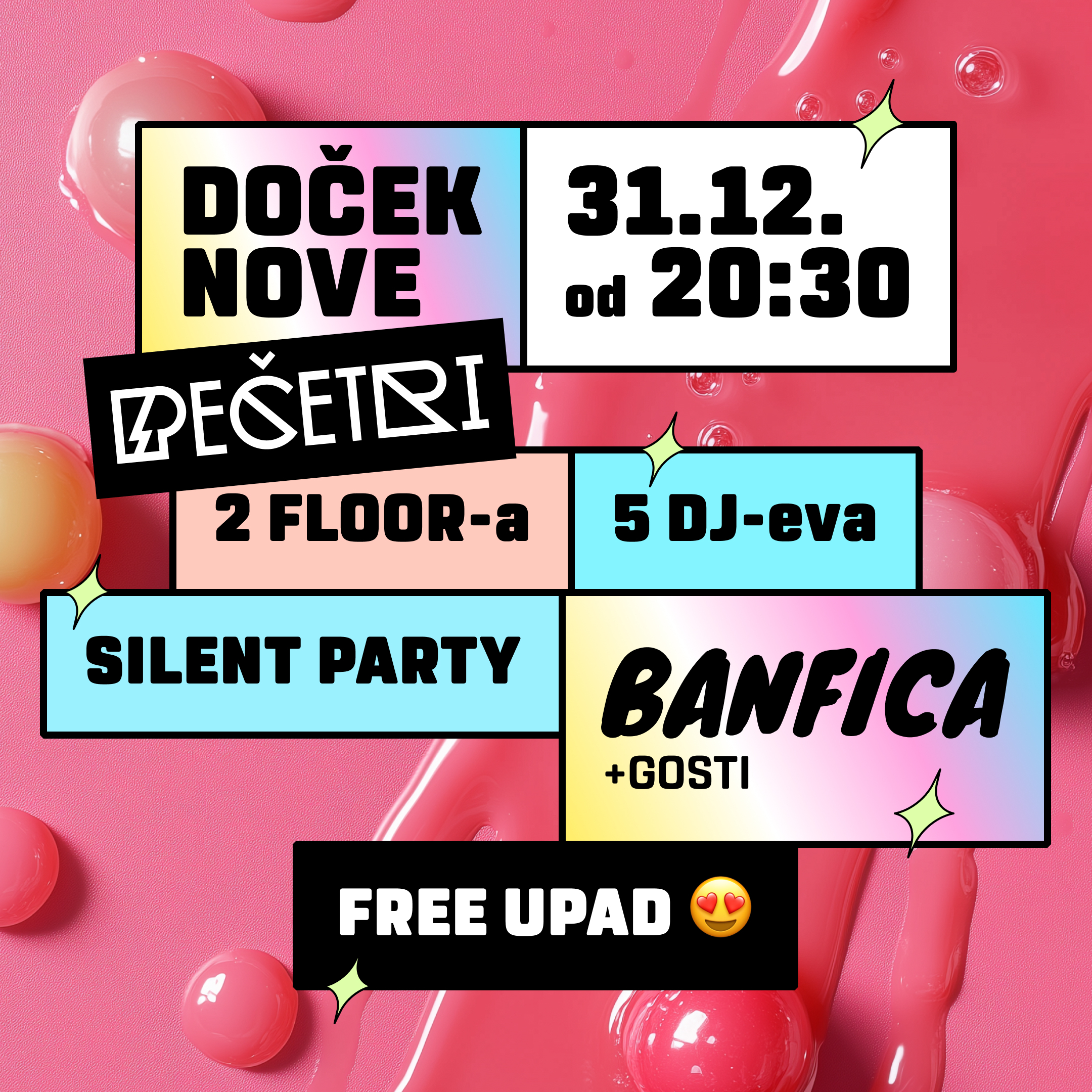Upad na Doček u P4 je BESPLATAN, a možeš nam se javiti u inboks na društvenim mrežama za rezervaciju stolova.
